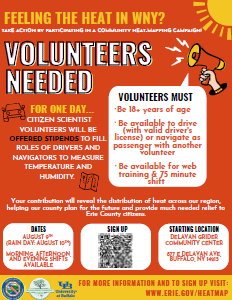 Volunteers Needed on August 9th for a 1-Day Heat Mapping Campaign in Erie County