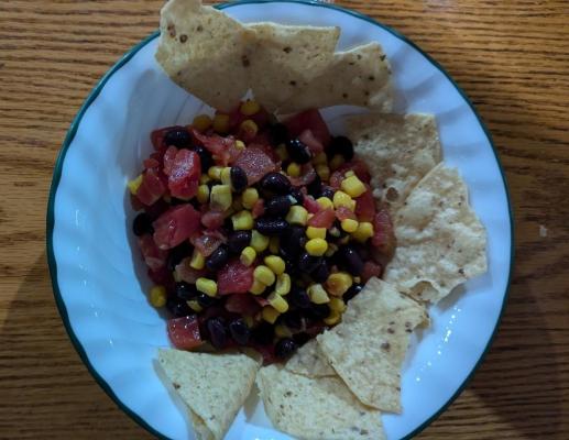 - Put the black beans and whole kernel corn in the bowl.