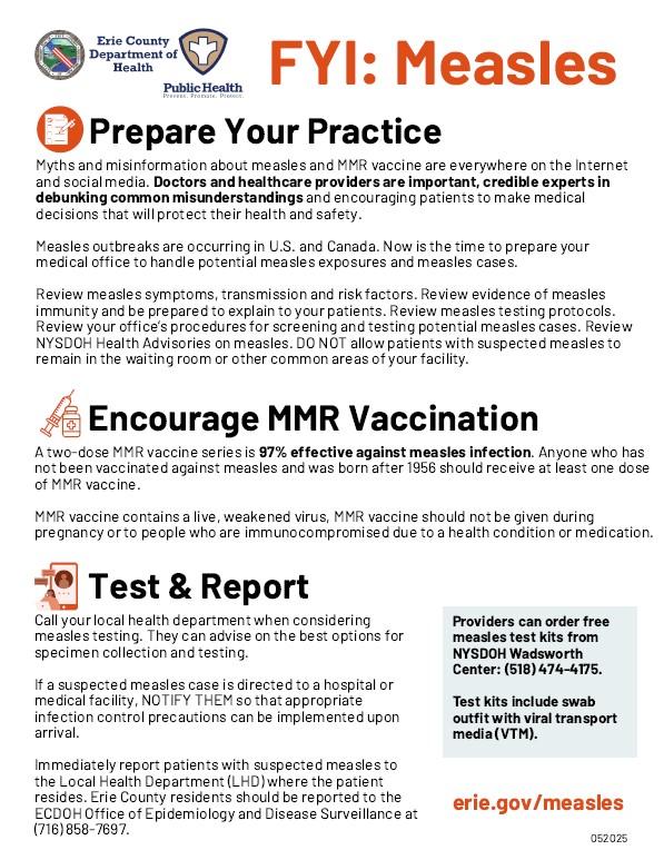 - Review NYSDOH Health Advisories on measles.