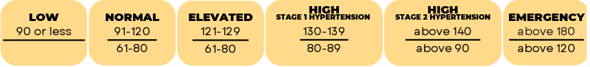Note: Your blood pressure depends on many factors including lifestyle; medications such as mental health medicine, birth control, or steroids; medical conditions such as diabetes and sleep apnea; family history; your emotions; and stressors such as income, employment status, neighborhood conditions, personal relationships, and more. Take your blood pressure regularly. Talk with your doctor about what a normal range is for you.
