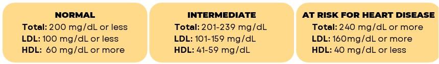 Note: Some sources will show separate cholesterol levels for men and women. It is important to understand that this difference is related to the level of the hormone estrogen found in your body. Each of us is unique and our estrogen level may not relate to our gender. Your level of estrogen can be impacted by pregnancy, menopause, medication and more. Family history and lifestyle also play a role in your cholesterol. Talk with your doctors about what range that is right for you.