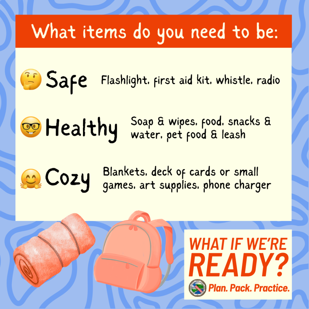 Here are 5 social media posts based on the “What If We’re Ready? Plan. Pack. Practice.” campaign.