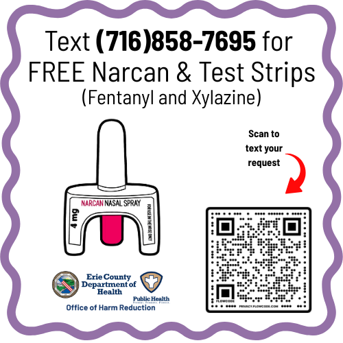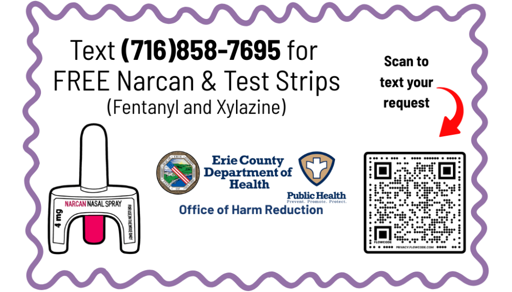The Erie County Department of Health (ECDOH) offers many ways to get naloxone and other harm reduction supplies for free.