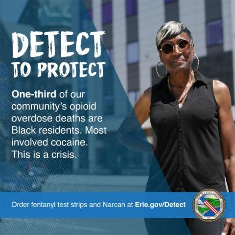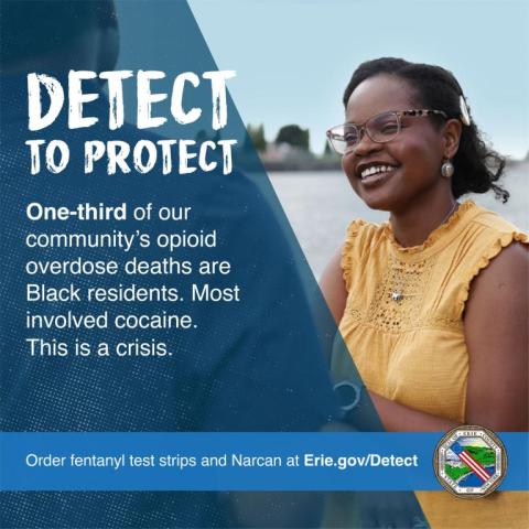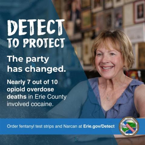 The Erie County Department of Health is launching a “Detect to Protect” marketing campaign to raise awareness around opioid poisoning and drug overdose deaths, and focus public attention on the need to test illicit drugs – especially cocaine - for fentanyl.