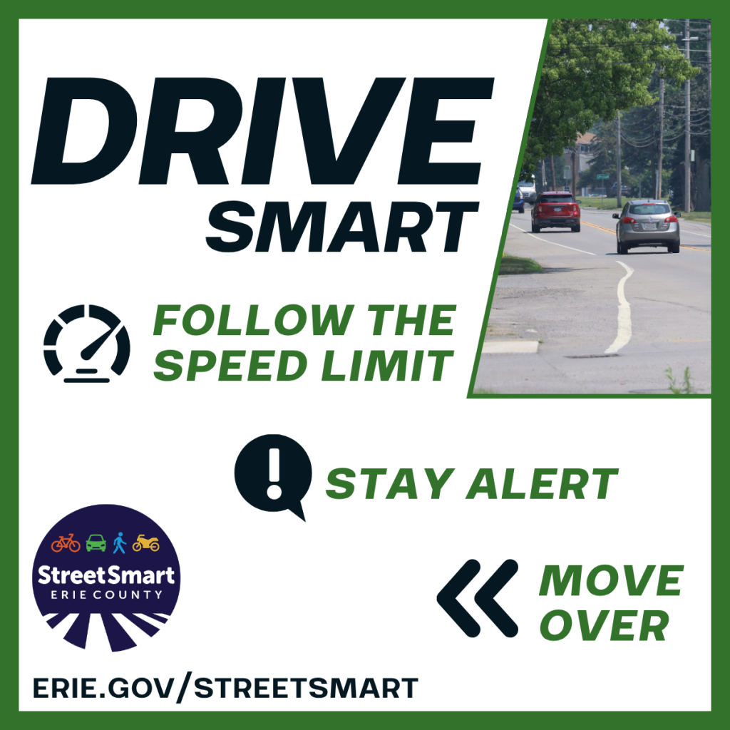 The campaign also highlights how the built environment, including sidewalks, crosswalks, and bike lanes, shapes health and safety by supporting active and connected communities. StreetSmart Erie works to build a shared culture of road safety across the county.