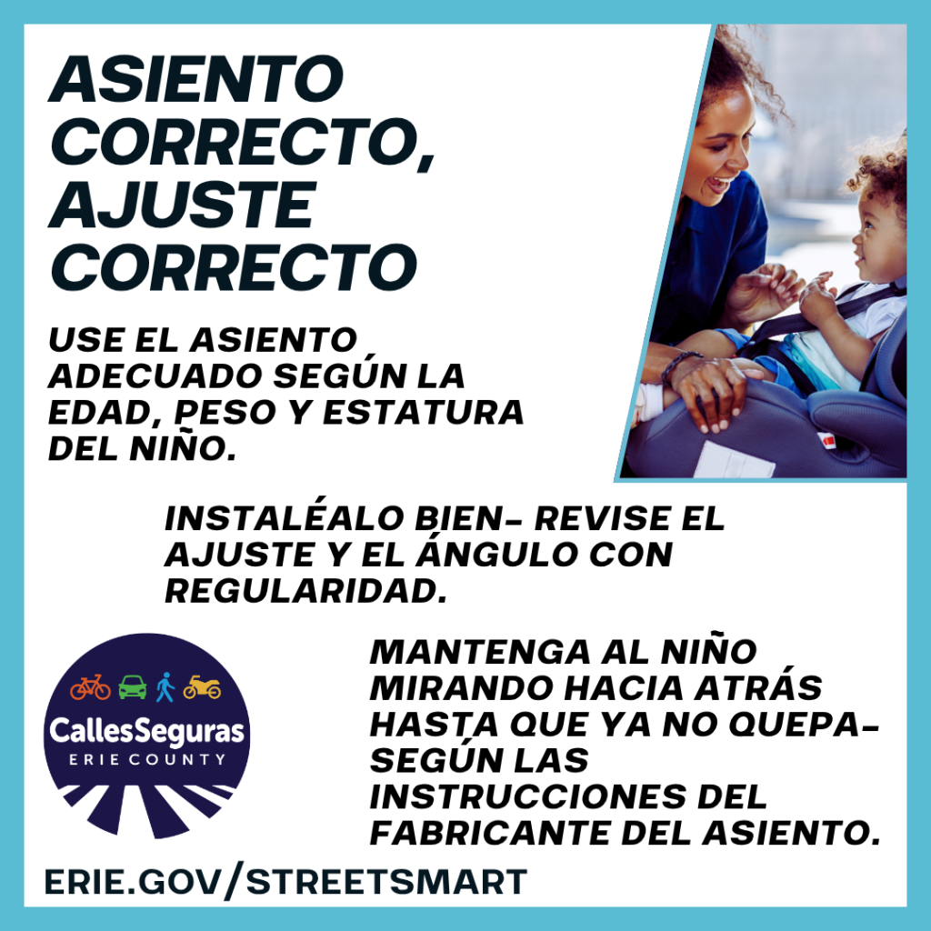 ¿Sabía que casi la mitad de los asientos de carro no están bien instalados? Los errores podrían incluir arneses flojos, correas sueltas, y hasta asientos mal asegurados. En un choque, un asiento bien instalado puede salvar la vida de su hijo y reducir el riesgo de lesiones graves o discapacidad. Asegúrese de que su hijo use el asiento correcto según su edad, peso y estatura. Coloque a los niños más pequeños en un asiento miranto hacia atrás: es lo más seguro. Los asientos elevados (booster) ayudan a proteger a los más grandes. Abróche bien al niño, revise el ajuste de los arneses y asegúrese de que el asiento esté instalado según las instrucciones del fabricante. #StreetSmartErie #CallesSegurasErie #EstoEsSaludPública #AsientoCorrecto #CamineConCuidado |