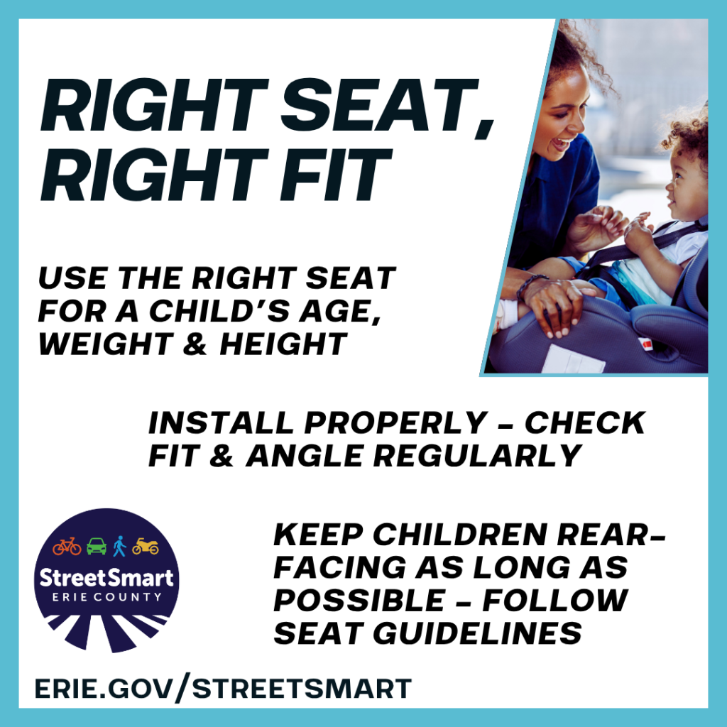 Did you know that almost half of all car seats are not installed correctly? These mistakes range from loose harnesses and unattached straps to improper securing of the seat itself. In an accident or crash, properly installed car seats can save your child's life and reduce their risk of severe injury and disability. Make sure your child is in the right car seat for their age, weight and height. Rear-facing is safest for young children, and booster seats help older kids stay secure. Buckle up and check strap fit and seat placement often. #StreetSmartErie #ThisIsPublicHealth #SafeStreets #RoadSafety #Carseat |