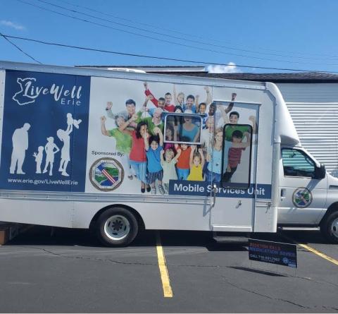Curbside Care, "Health & Harm Reduction" offered every Tuesday from 11am-5pm located at 158 Pearl Street, Buffalo (the east side of the Rath Building), look for the "Live Well Erie van" pictured here.