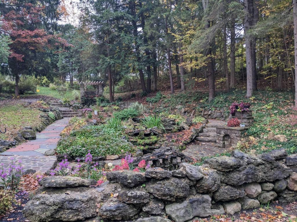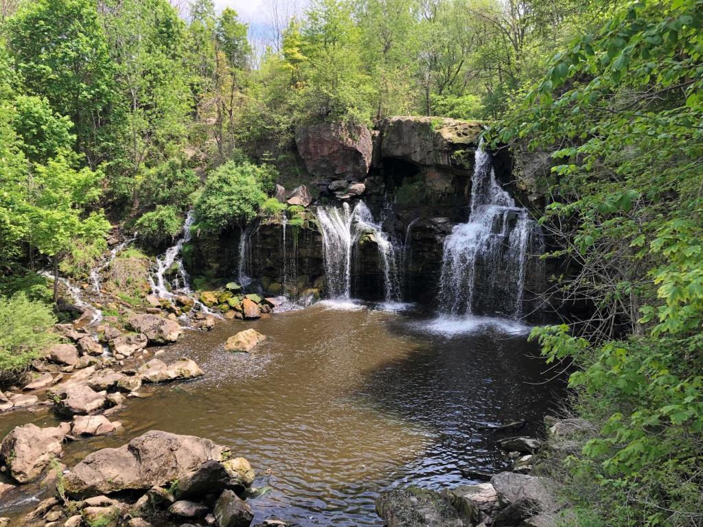 Water Life: Akron Falls leads into sparkling streams and to the lake for fishing of pan fish, bass and carp.
