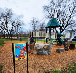 A nature based playground is installed at the front of the park.