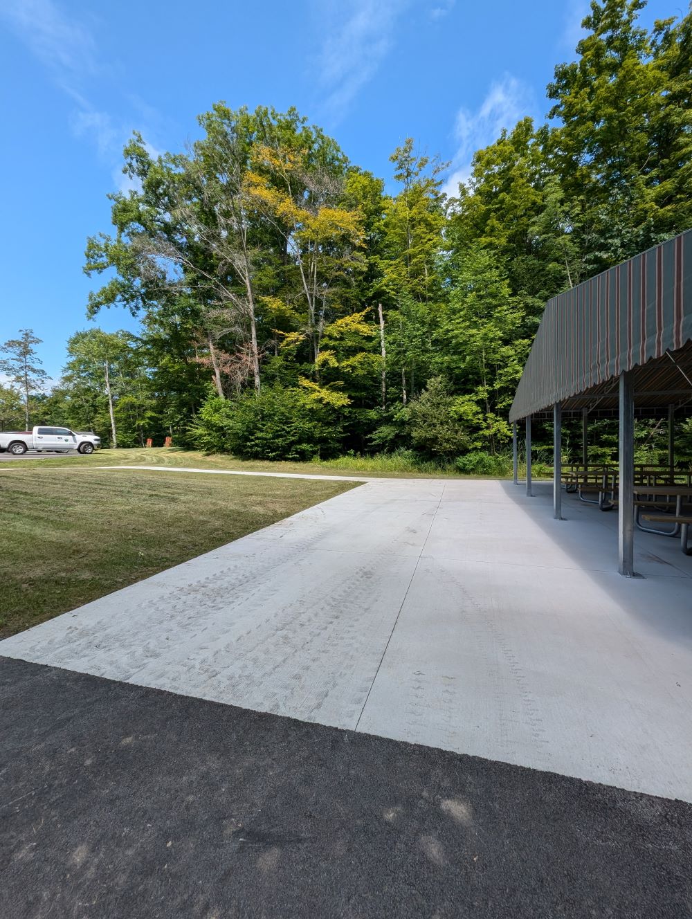 Open/partially covered. Open stage. Electricity (stage only). Exclusive parking lot, accessible to shelter. Concrete pad for food truck/event amenities. Approved Special Event Permit Required: https://www3.erie.gov/parks/form/special-event-application.
