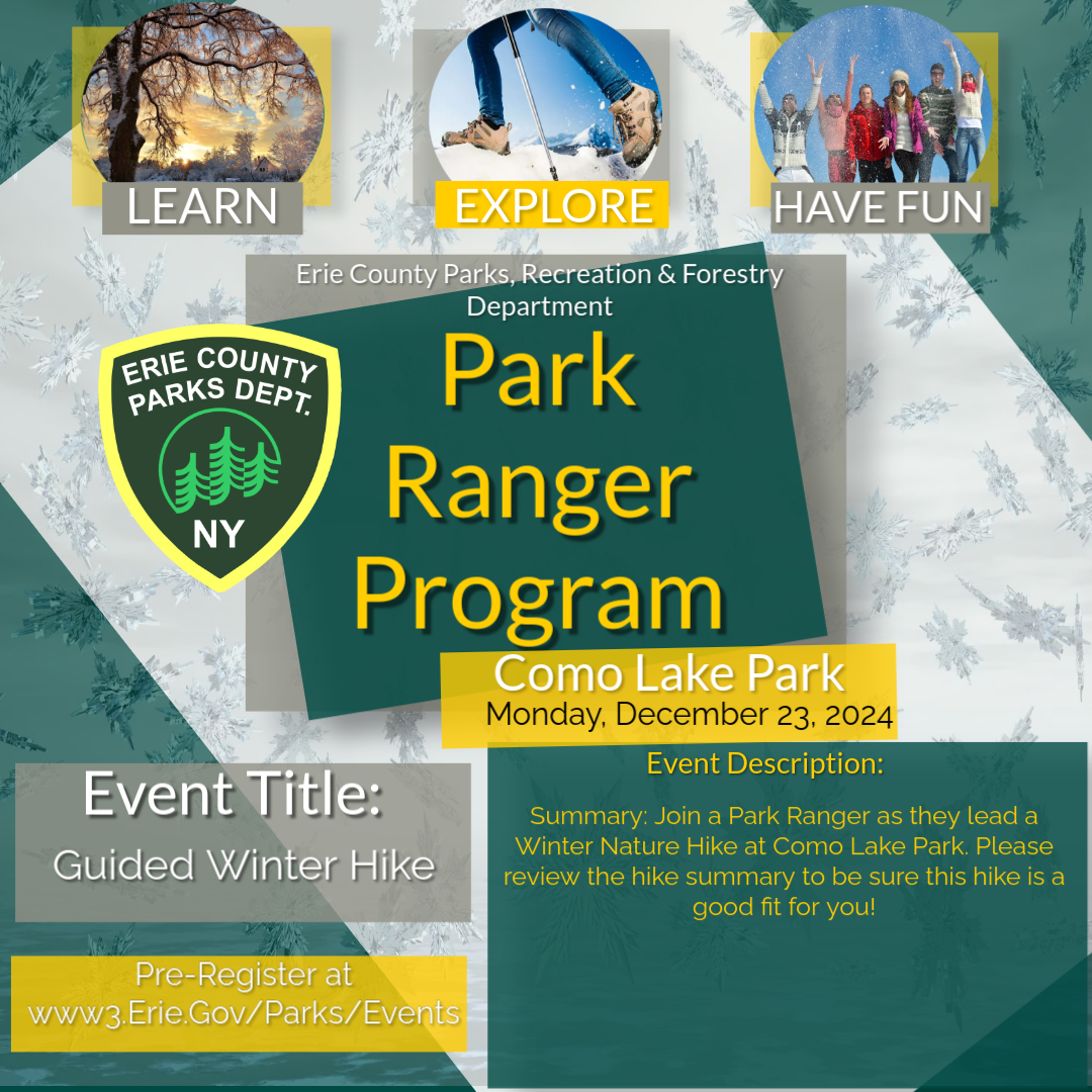 Summary: Join a Park Ranger as they lead a Winter Nature Hike at Como Lake Park. Please review the hike summary to be sure this hike is a good fit for you!