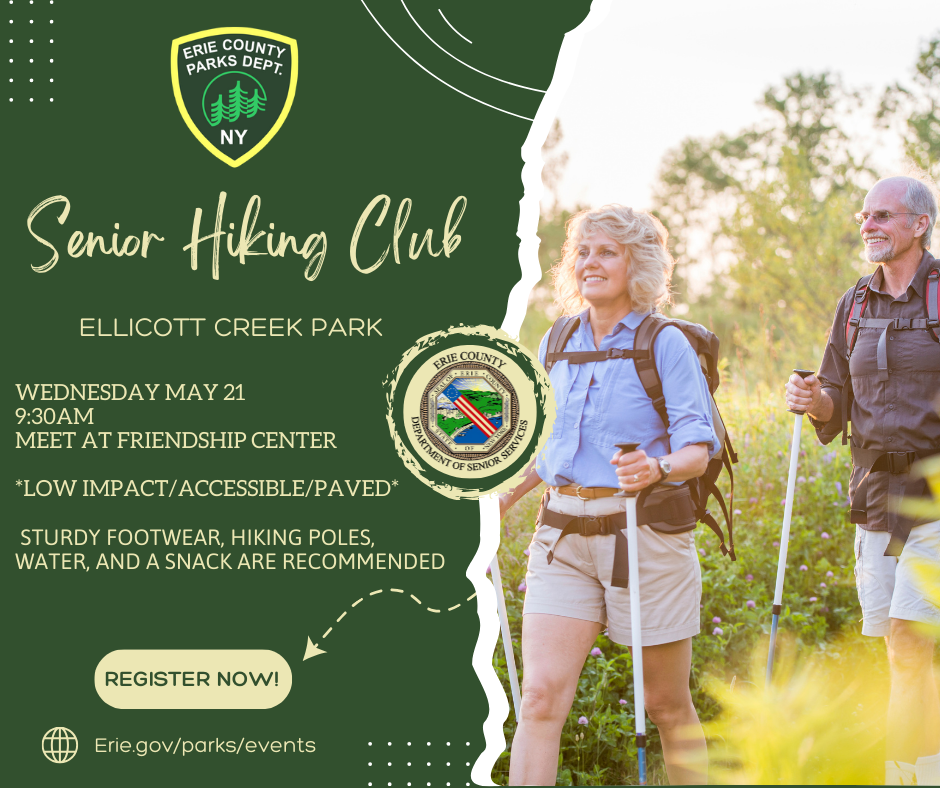 Join us as we partner with Erie County Senior Services for their Senior Hiking Club. The Hiking Club is a wonderful opportunity for seniors to stay active and enjoy the beauty of nature in the company of like-minded individuals.